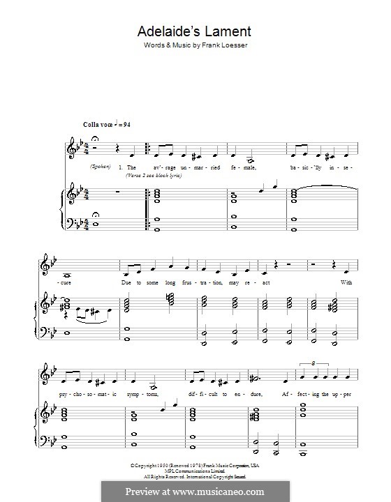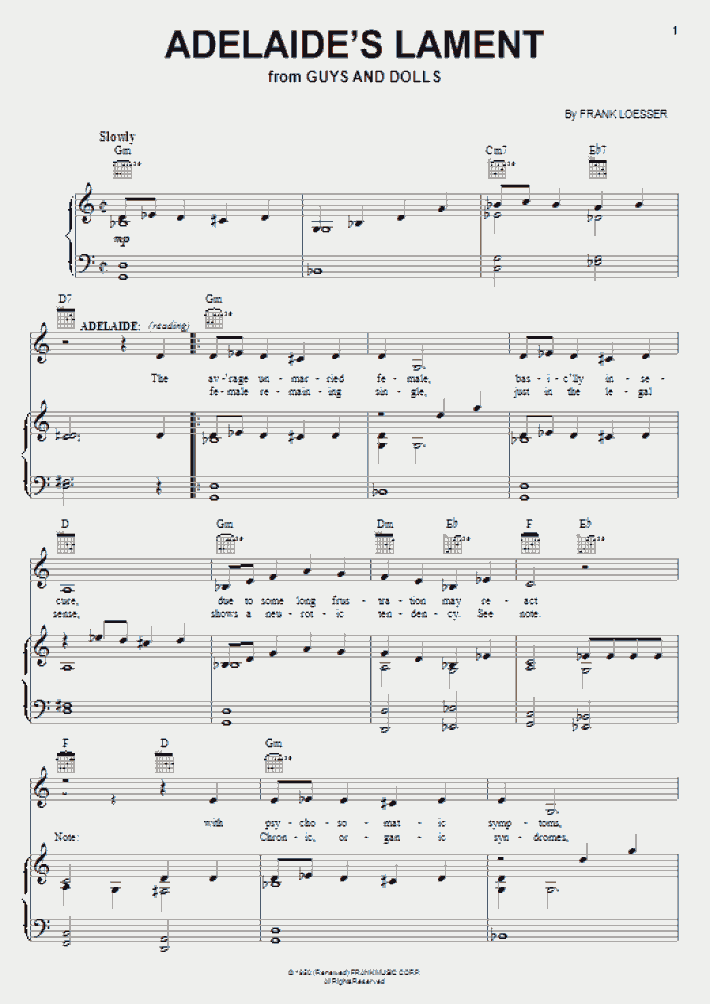 Tredwellsmusic Com Adelaide S Lament From Guys And Dolls Frank Loesser Sheet Music Out Of Print