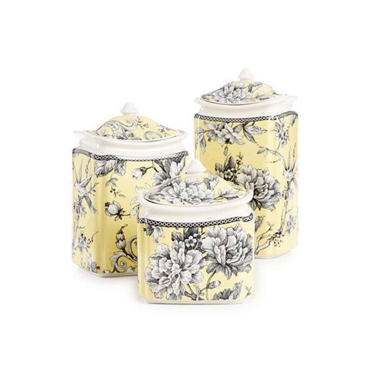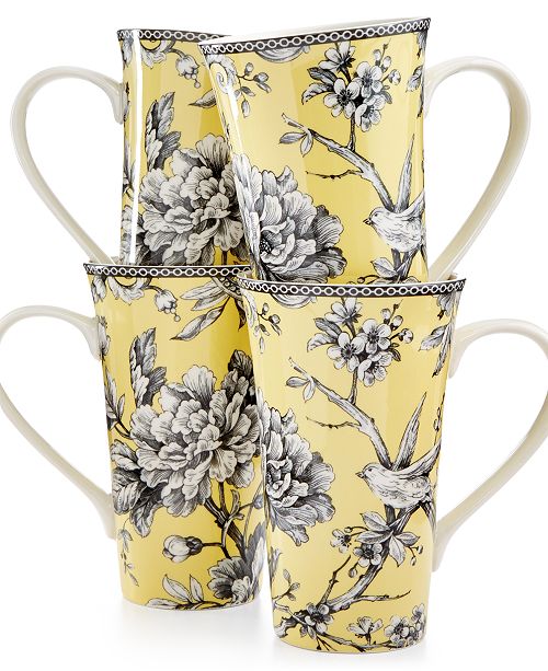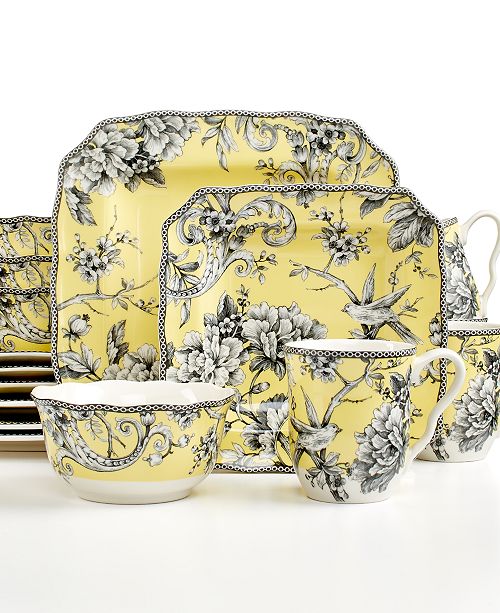 16 Pc 222 Fifth Adelaide Yellow Grey Dinnerware Plates Bowls Mugs Toile Birds 1750100500