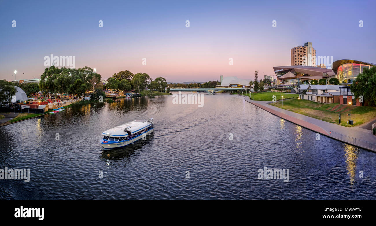 An Empty Tour Boat Heading Towards A Bridge On The River Torrens In Adelaide South Australia Stock Photo Alamy