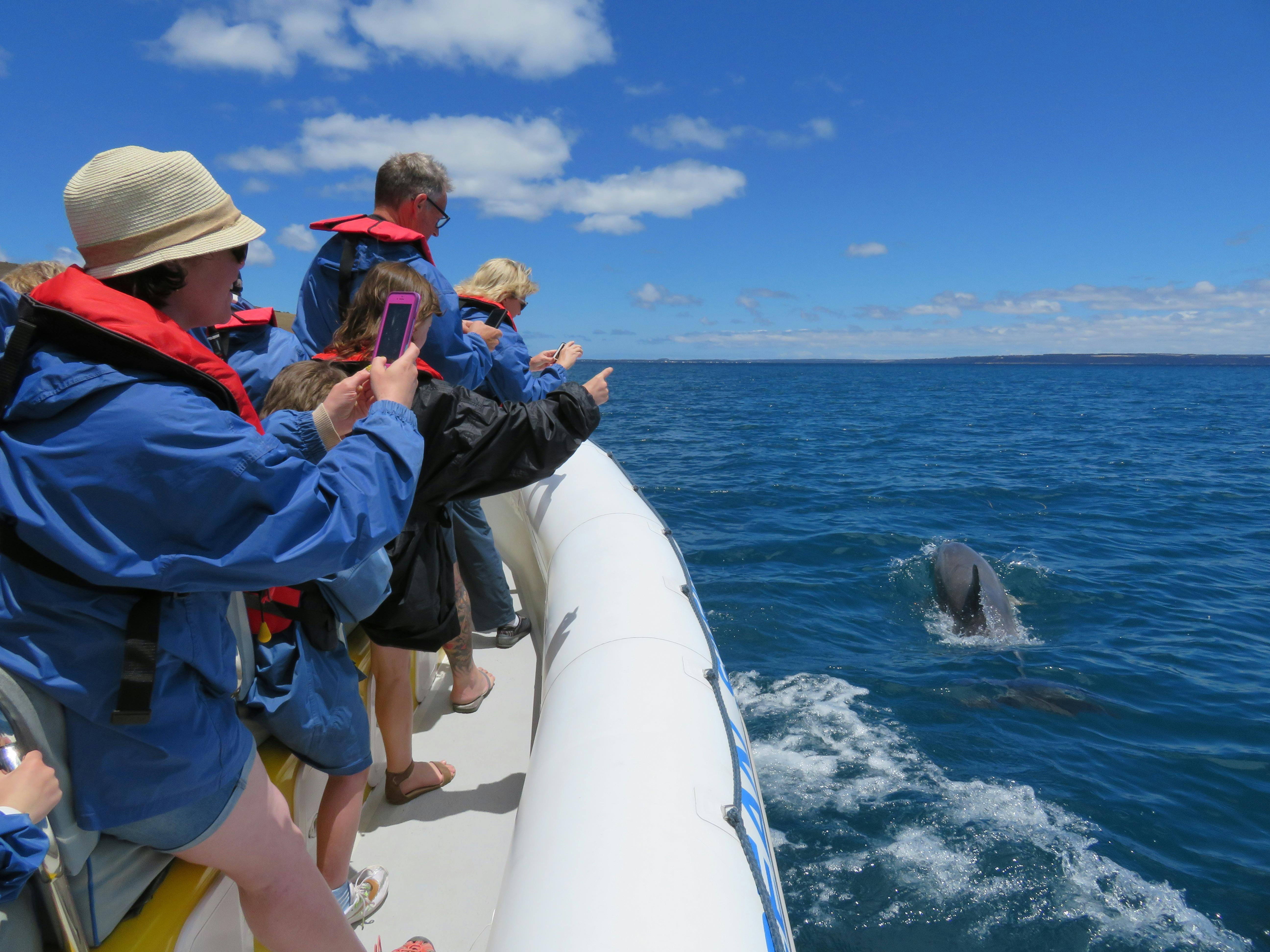 Andrew the owner of kangaroo island marine adventures takes you on fast boat ride to see not only dolphins that you can swim among but also discusses some of kangaroo islands geology geography and points out eagles nests where he frequently stops the boat to make interactive. Kangaroo island marine adventures. Departs daily from christmas cove marina penneshaw.