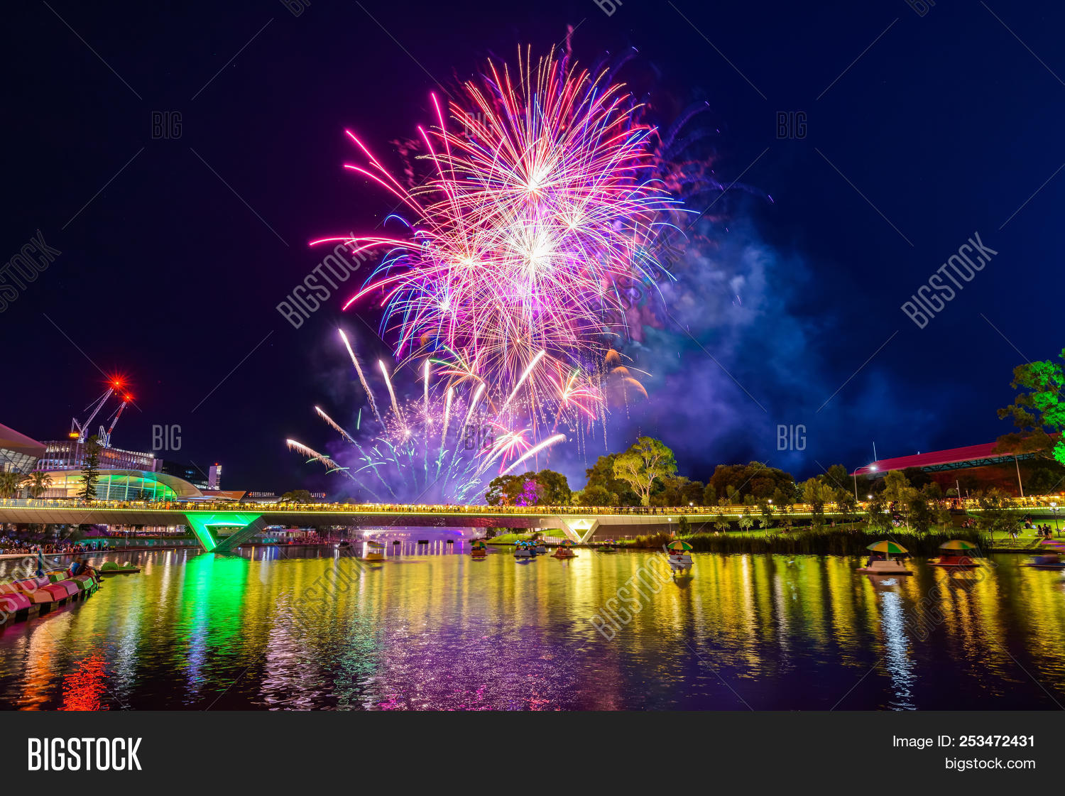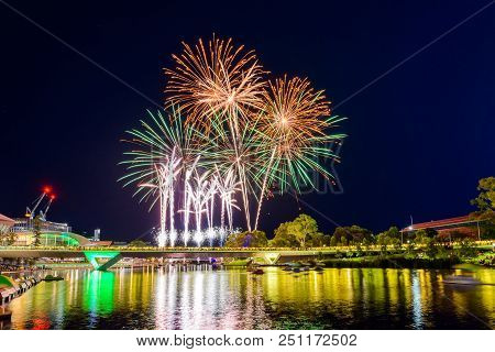 Australia Day Fireworks In Elder Park Adelaide City Viewed Accross Torrens Foot Bridge 253472431 Image Stock Photo