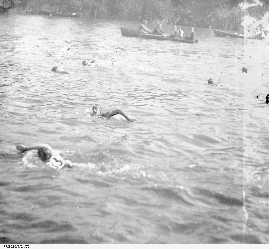 Several swimming clubs were started the most enduring being gilberton amateur swimming club which hosted races in its large swimming hole and fostered free swimming lessons for local children. Patriotic carnival at gilberton amateur swimming club 11 march 1912 river torrens gilberton. The photograph shows many spectators on the banks of the water and up the hill from the water.